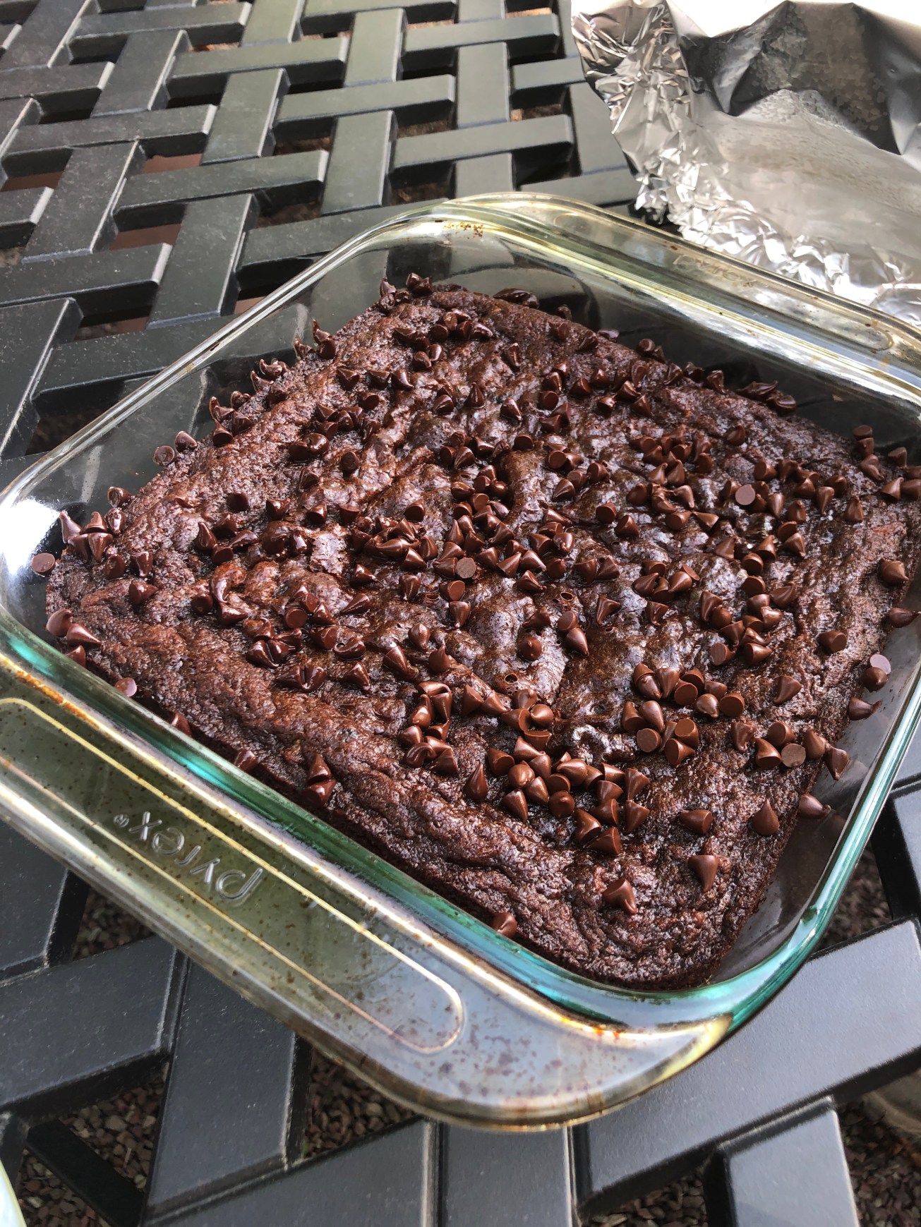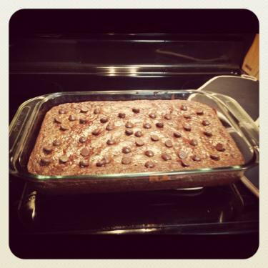 -Bake for 35-45 minutes, or until a toothpick comes out looking like just melted chocolate vs. raw mix. Sprinkle chocolate chips on top right after taking it out of the oven- set out to cool and ENJOY!