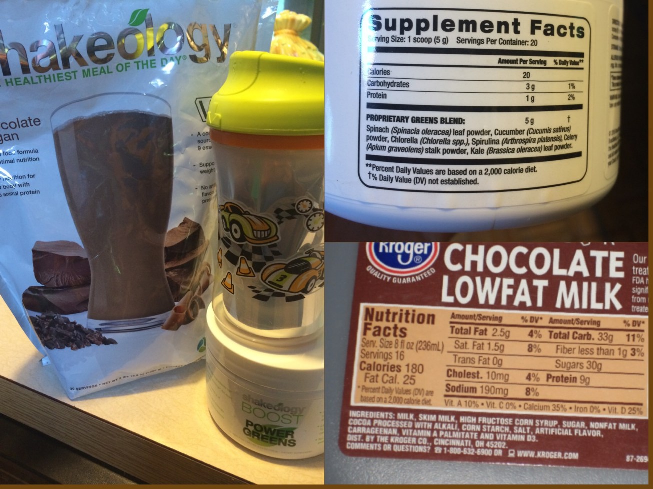 So I’ll gladly offer him my version of choc milk vs the label noted next to it that had all these added unnecessary nor nutritious ingredients.