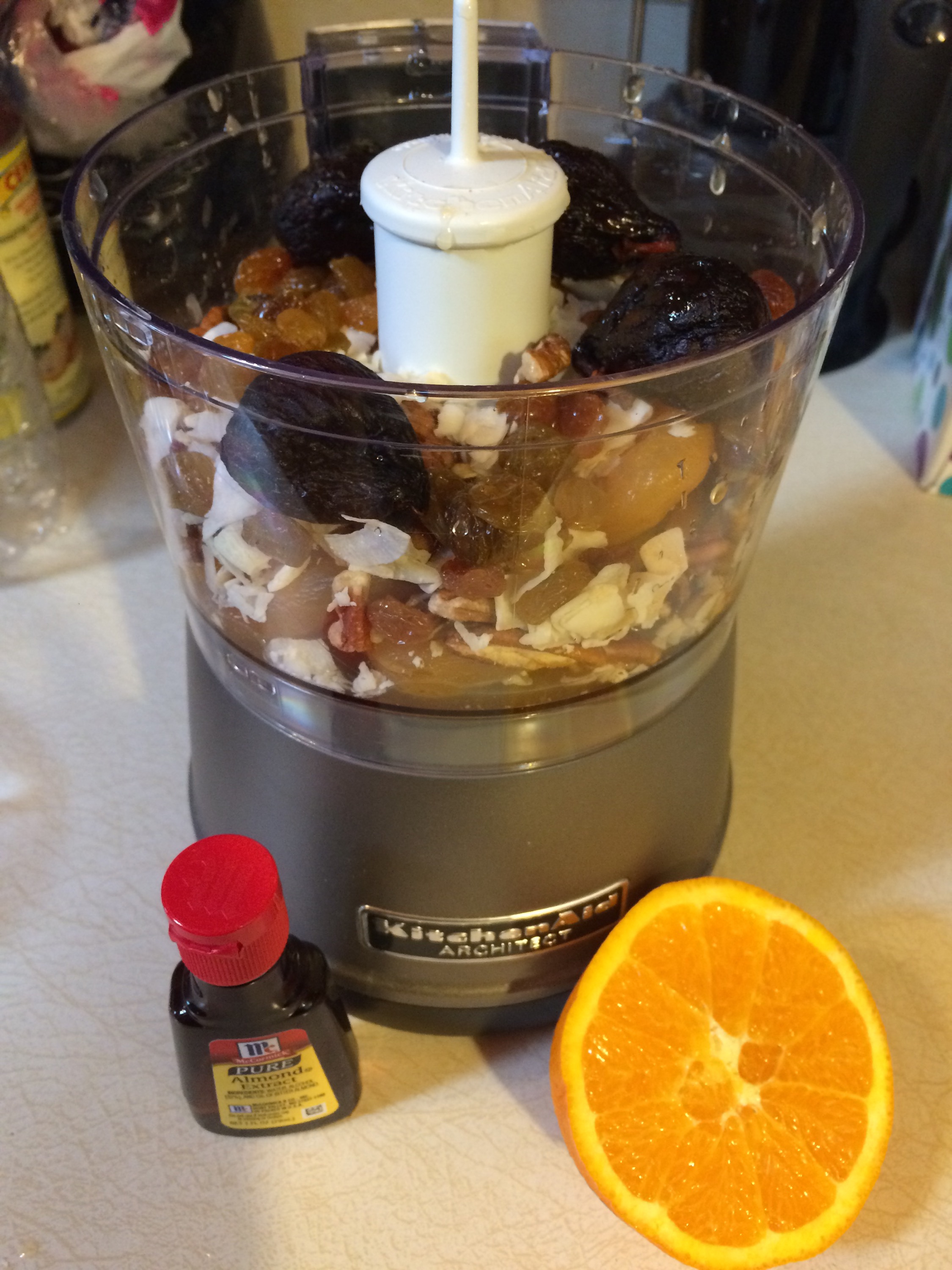 Combine all ingredients but the chocolate in processor. Pulse until blended well. Roll into balls and refrigerate until hardened enough to dip in melted chocolate. Once dipped refrigerate again until chocolate hardens.