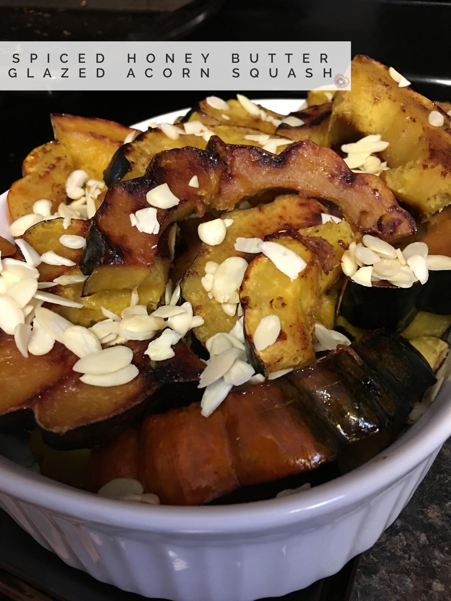 •Melt, mix, & brush both sides of the squash slices with the glaze ingredients. Sprinkle with your spice of choice (I used pumpkin pie spice. It’s got the perfect mix of spices I wanted). Bake 15 minutes and brush glaze on again and bake another 15 minutes.