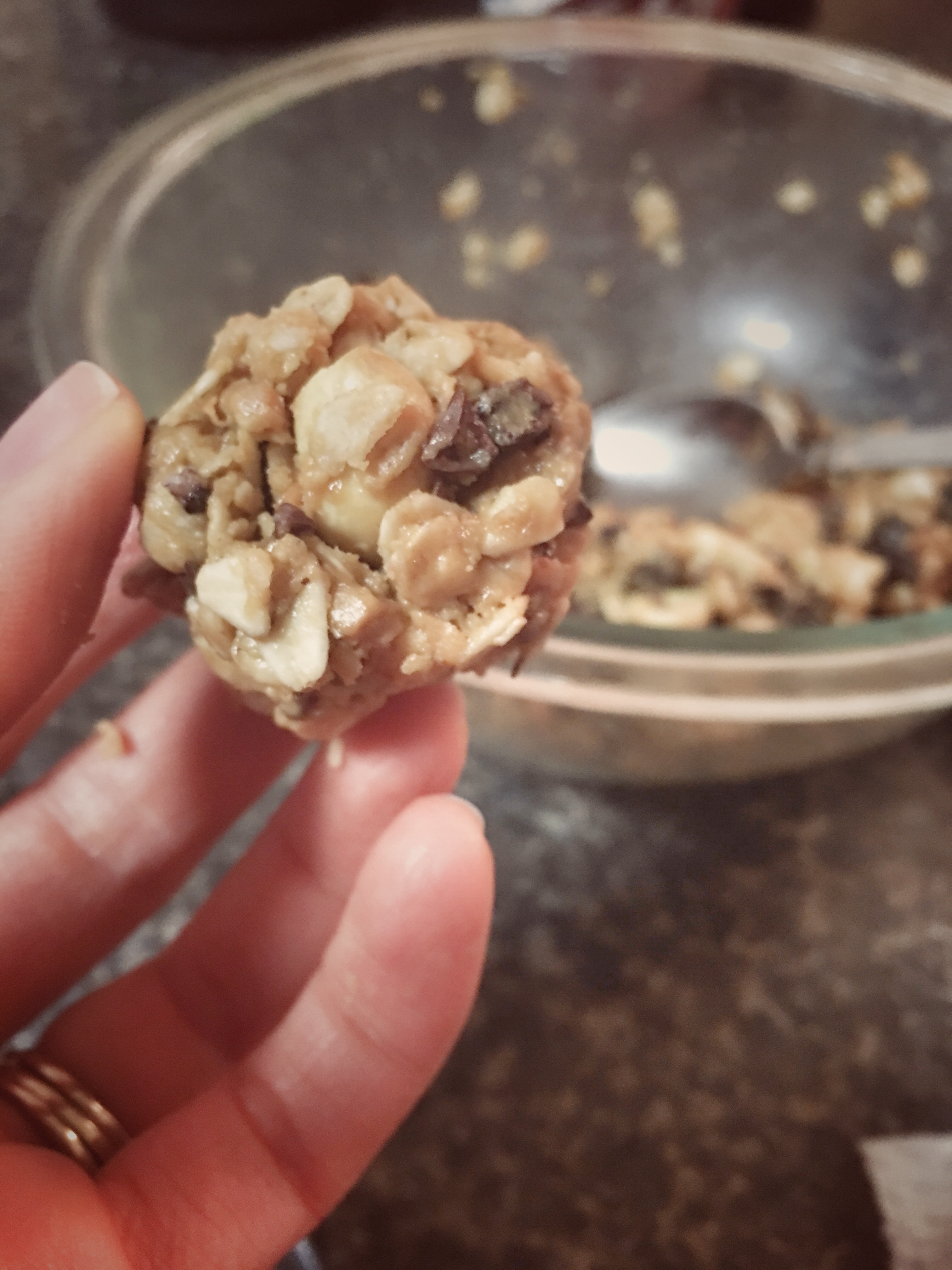 –Add more Honey or PB if need to form balls