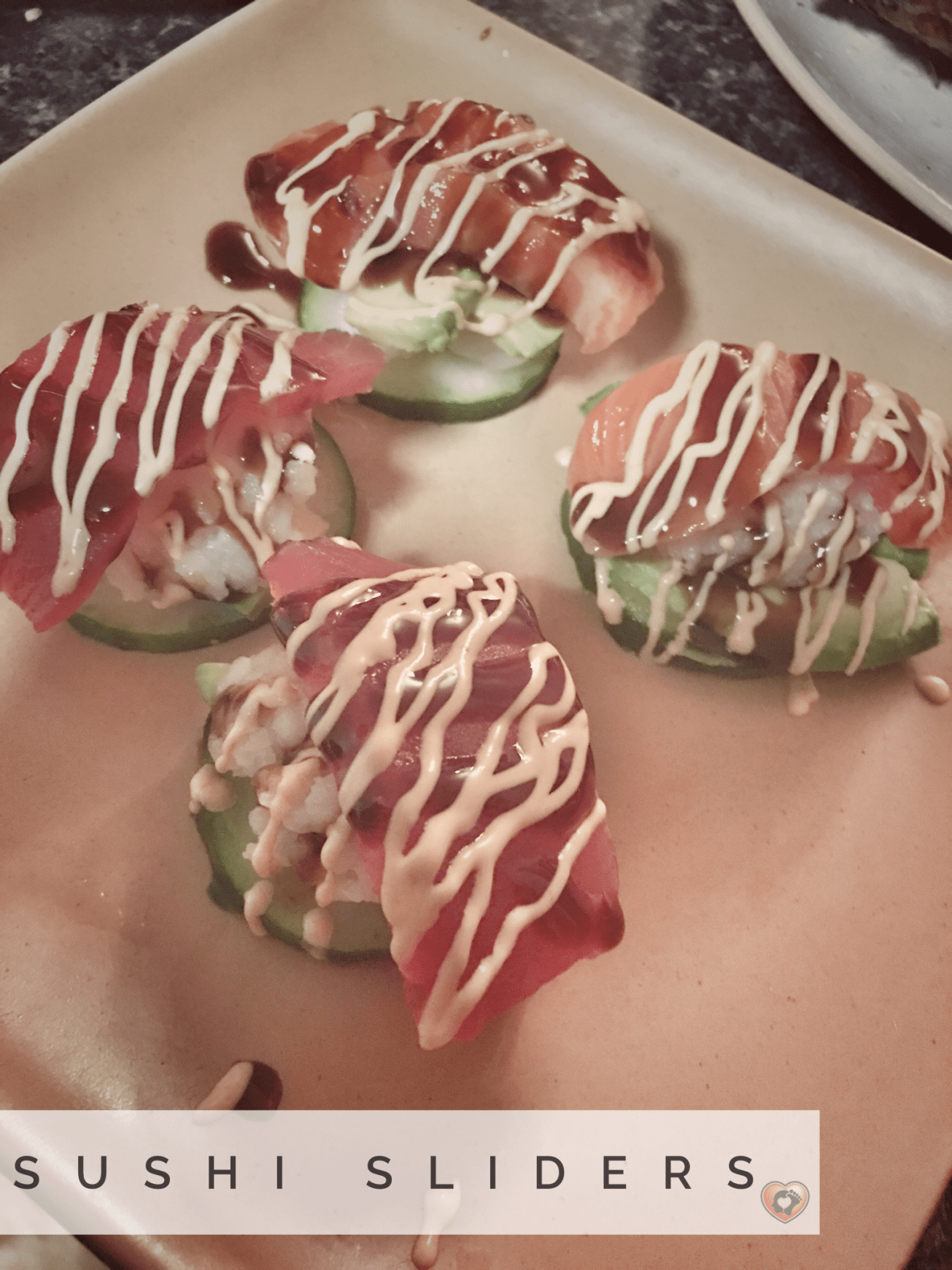 So for our New Years Eve festivities my Husband and I decided to make sushi. To make it easier (lol) we went with bite size Sushi Sliders…