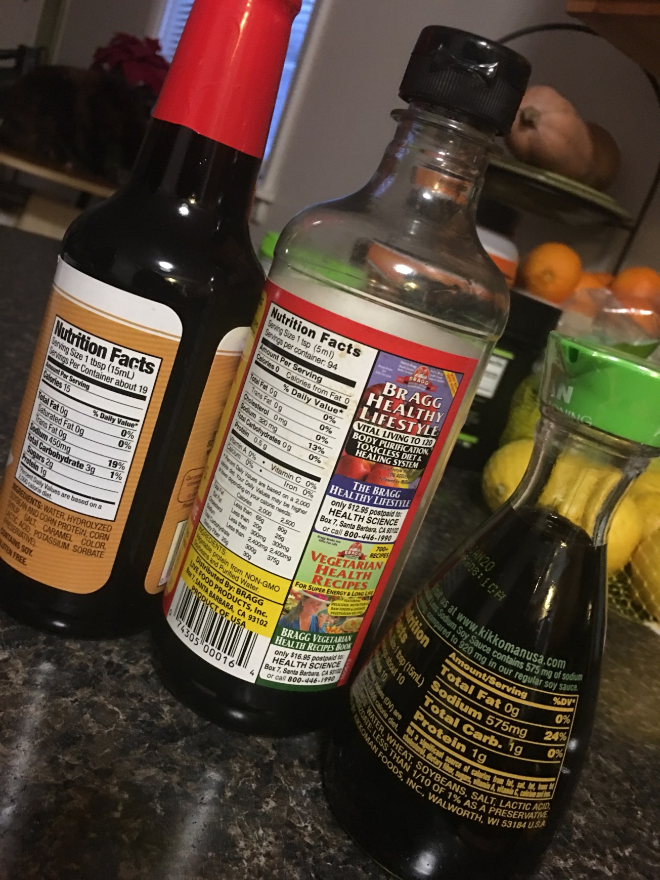 So looking at Soy Sauce. I grabbed some bottles we had in our cabinet. I strictly use liquid aminos now that Iāve discovered it and LOVE IT! I use it for cooking, for salads, for dressings, etc.