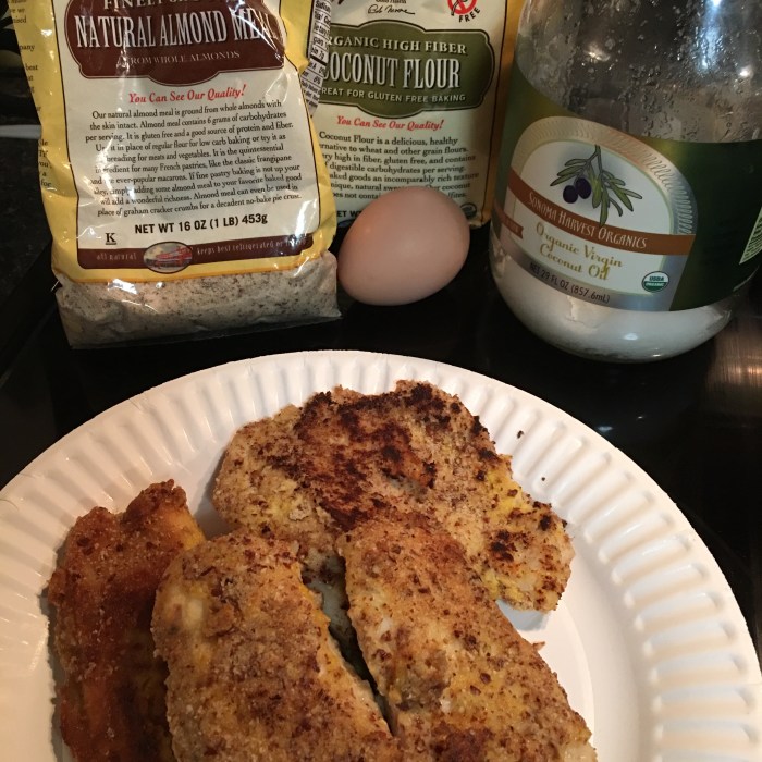 Soooo here’s a new yummy (to me at least). Instead of using bread crumbs for my tilapia fillets I used a mixture of coconut flour and almond flour! 1:3 ratio coconut to almond. I dipped my fish in egg and into my mixed dry ingredients […]