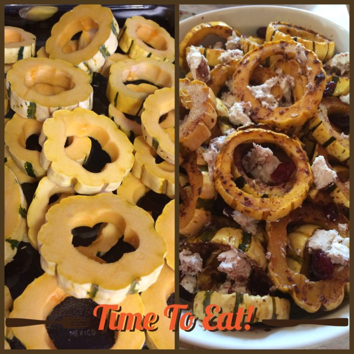 Delicata Squash side dish Slice squash and cut out centers (I used an apple corer to cut centers) Coat with olive oil, ginger, cinnamon and mix (coat to your liking), drizzle lightly with honey or maple syrup and stir around. Bake in oven stir after […]